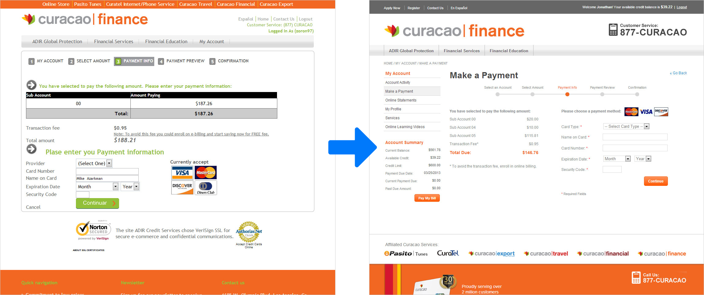 Users did not know there was a separate portal for making credit payments and would mistakingly visit the E-commerce store instead, only to reach a dead end